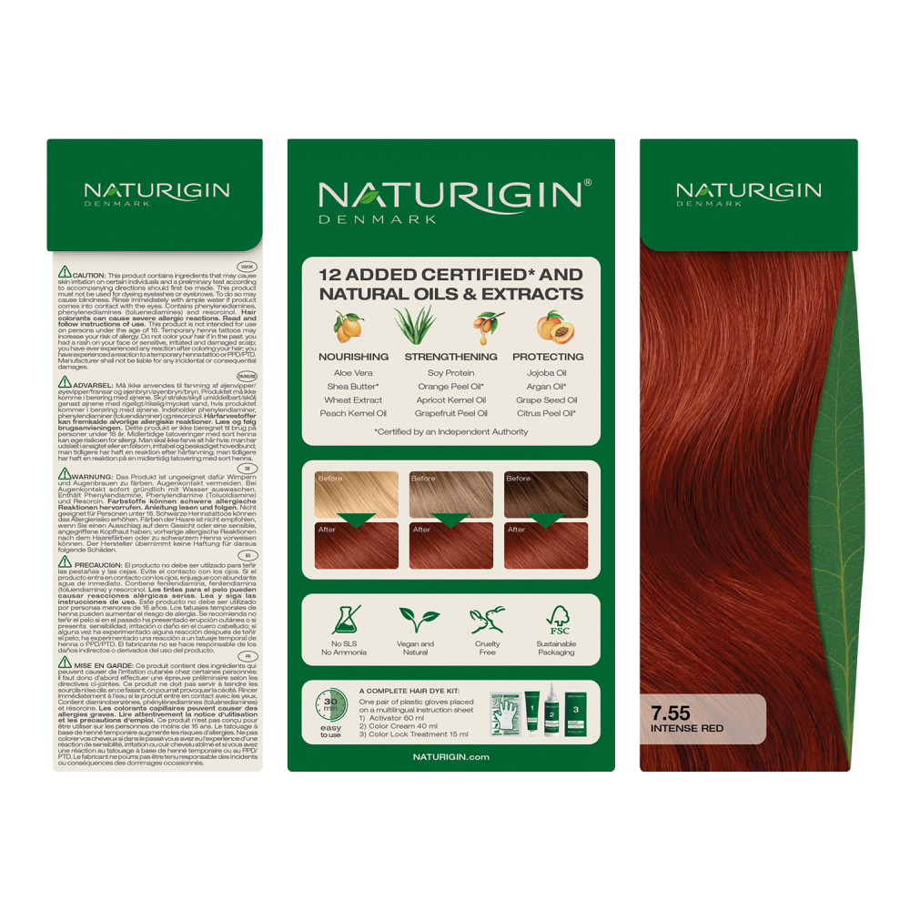 Aceasta filozofie si experienta in dezvoltarea sistemelor de colorare a parului pentru uz profesional, au condus la aparitia sistemului de colorare pentru acasa NATURIGIN 100% fara PTD, fara SLS, fara amoniac, fara resorcinol sau parabeni. O formula naturala avansata si certificata organic, cu un amestec special de uleiuri esentiale de lamaie si mandarin, ce protejeaza parul in timpul procesului de colorare, adaugandu-i in acelasi timp stralucire si hidratare.